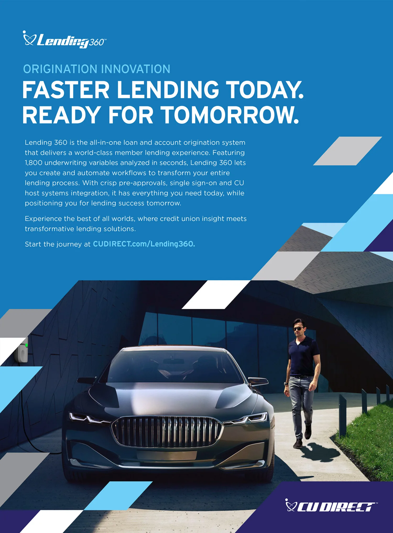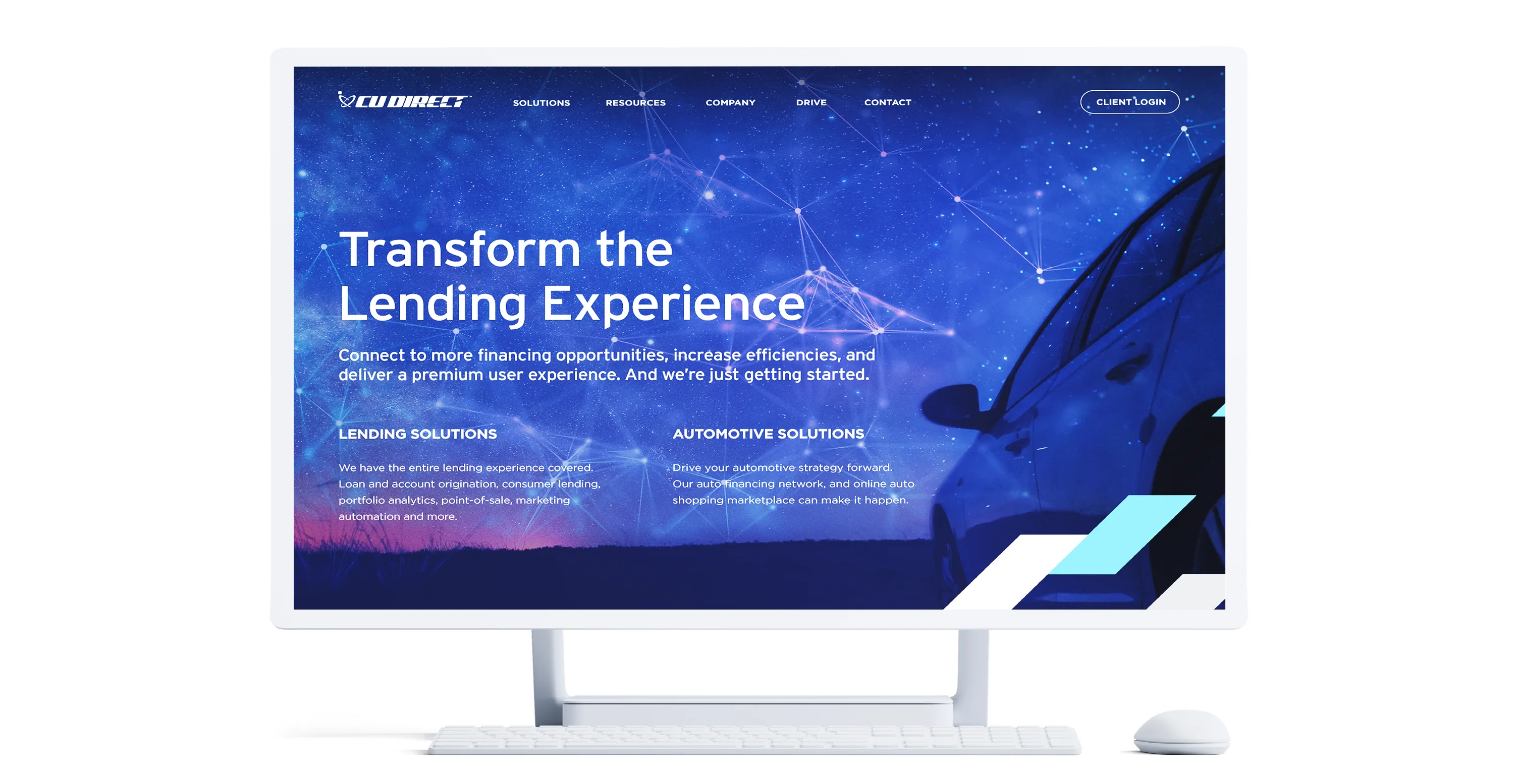 As CU Direct expanded beyond automotive lending into mortgages and other financial services, it faced the challenge of redefining its image as a future-forward fintech SaaS. The solution centered on a bold evolution of CU Direct’s visual framework, evoking technology, security, and leadership in the financial ecosystem of tomorrow.
